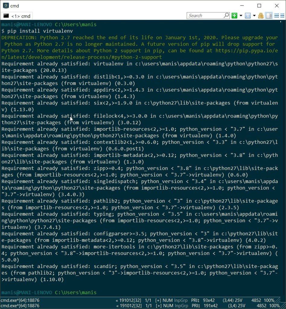 One thought on “How to Create Virtual Environment in Python 2.7”