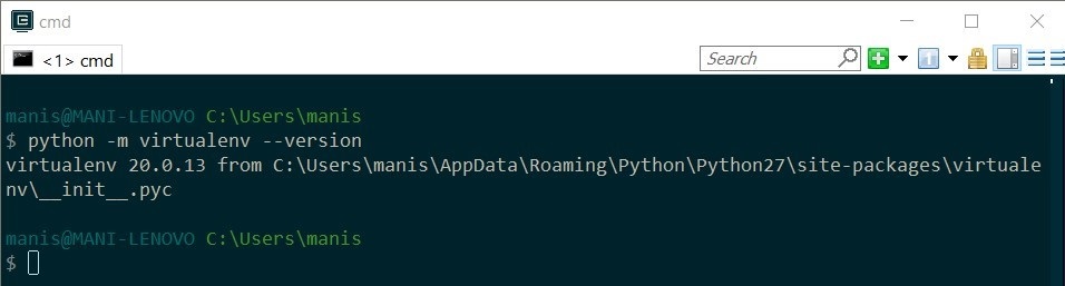 2. Verify installed version using βpython -m virtualenv βversionβ